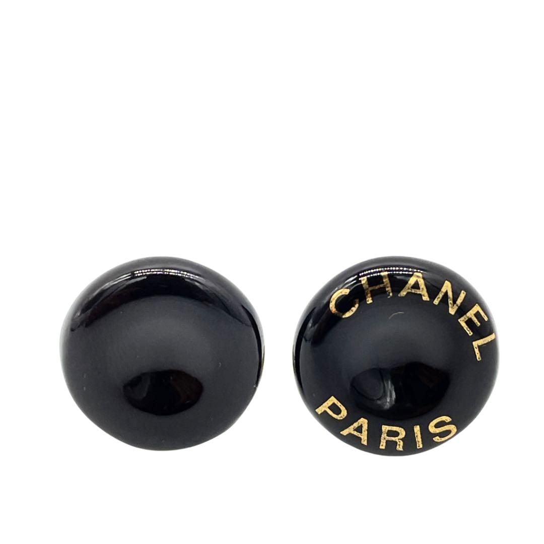 CHANEL シャネル ラウンドイヤリング ロゴ ブラック ゴールド 97A