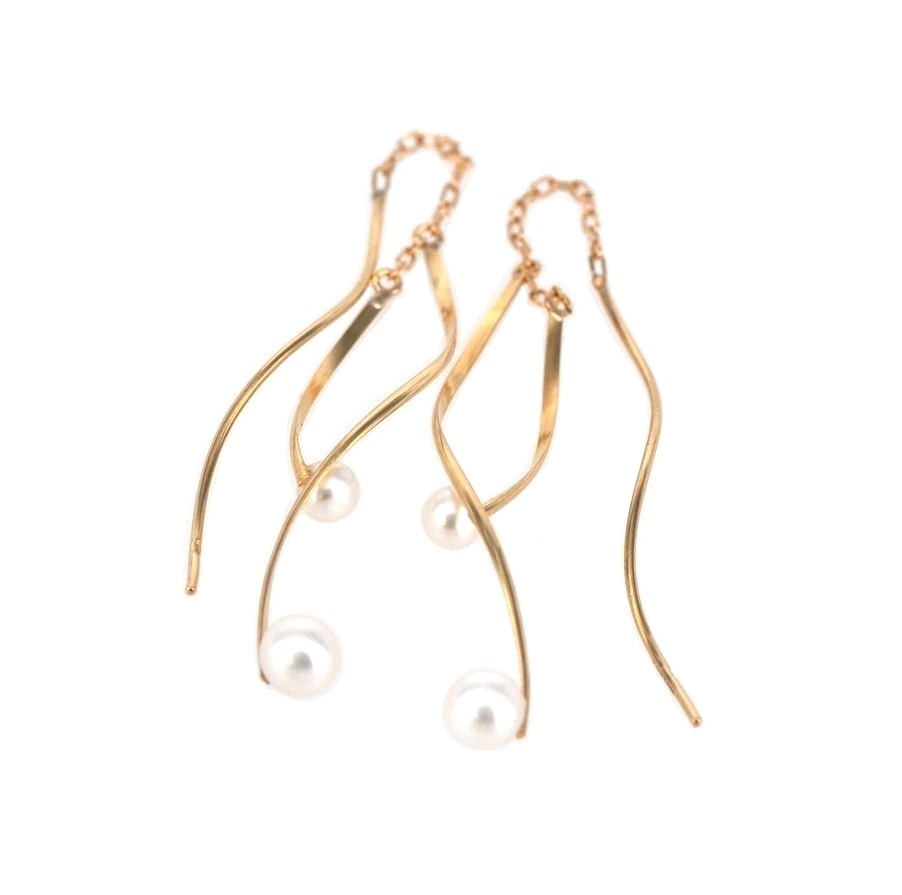 ダブル パール ドロップ ピアス (クリーム/ゴールド)