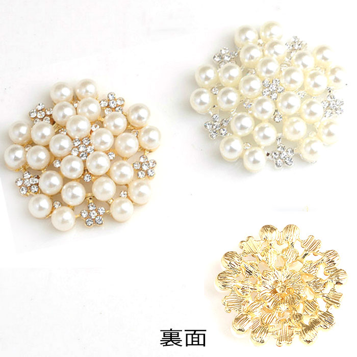 パールモチーフパーツ キュービックジルコニア付 約3cm フォーマル アクセサリー材料 花