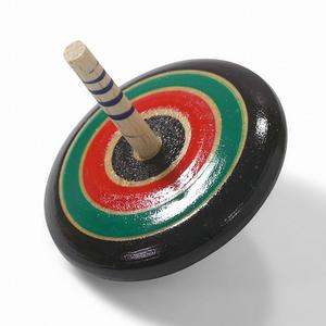 色とりどりのしっかりひねり独楽 木製 平こま 1個 ※色・柄はお選びいただけません