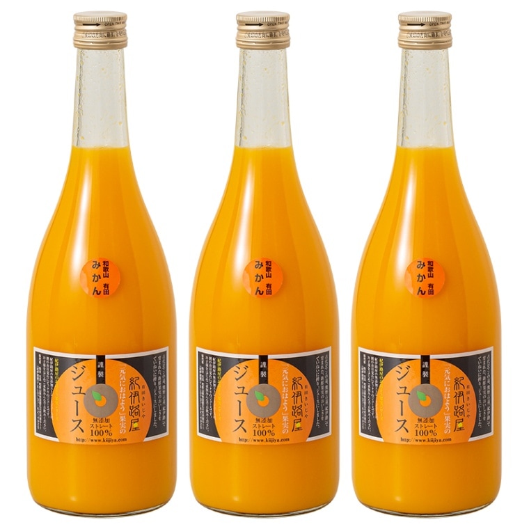 和歌山 紀伊路屋 有田みかんの無添加ストレートジュース 果汁100%(720ml)3本セット