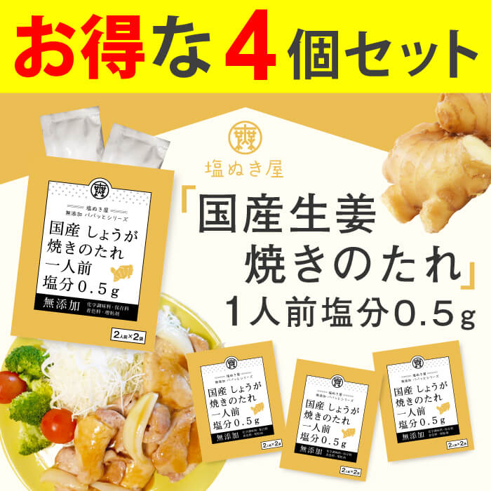 お得な4個セット 塩ぬき屋 減塩 国産しょうが焼きのたれ 4個セット (無添加)