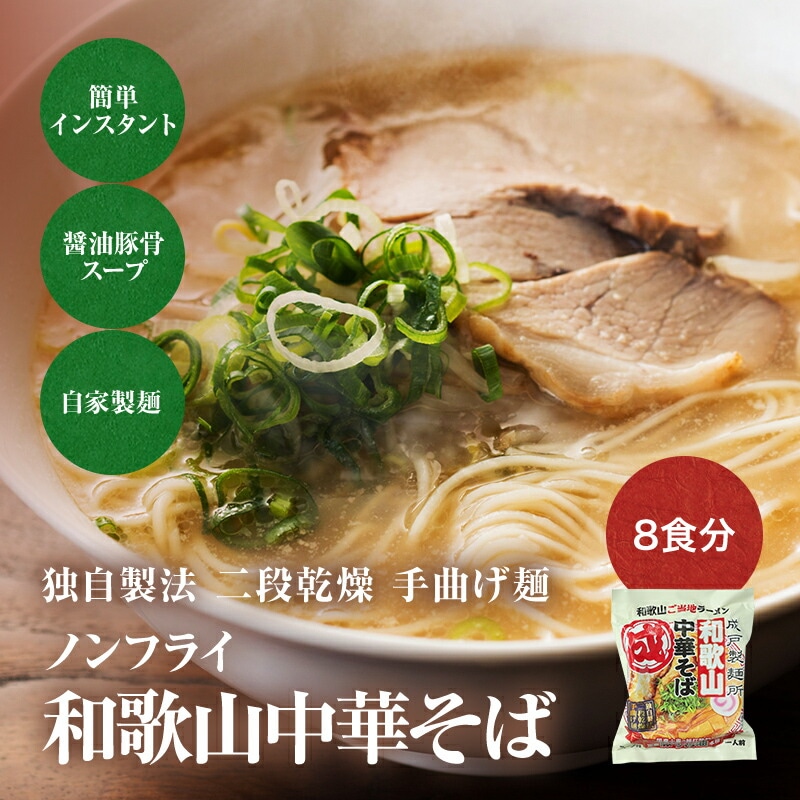 テレビで紹介! 国産小麦の細打ち乾麺 ノンフライ インスタントラーメン 和歌山中華そば 8食セット 和歌山ラーメン トルネード...