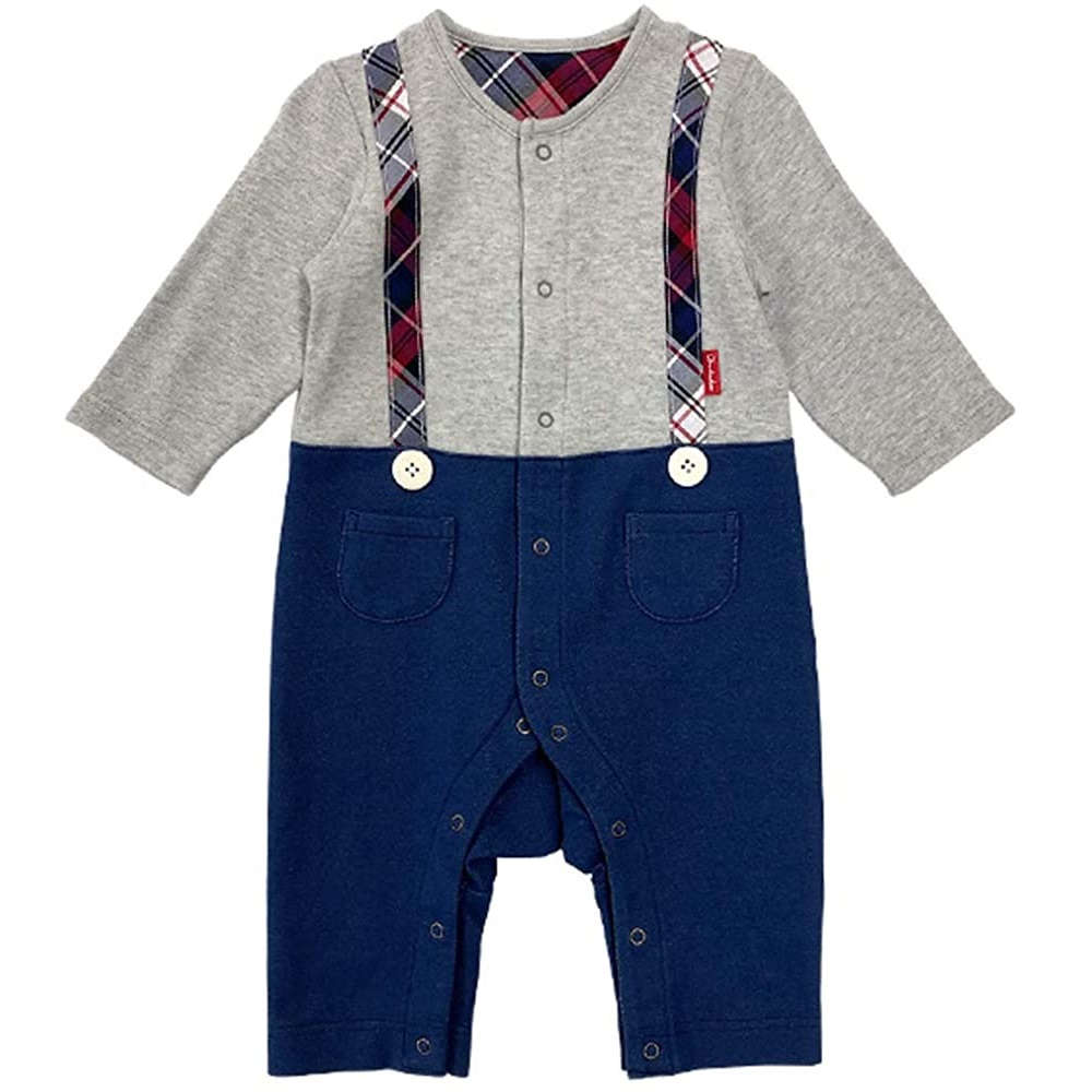 【新生児】 長袖前開きカバーオール:グレー【60cm】
