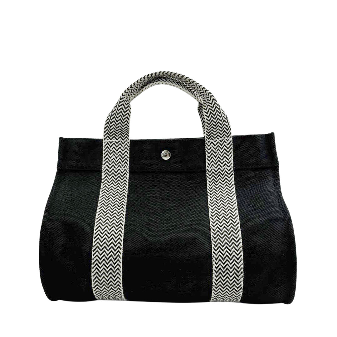 HERMES エルメス ハンドバッグ カンヌPM キャンバス ブラック ホワイト ※ポーチ欠損