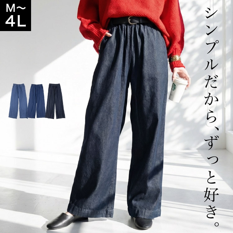 【期間限定21.7%OFF】デニム パンツ レディース ワイドパンツ ストレート セミワイド 綿100% 大きいサイズ M L L...