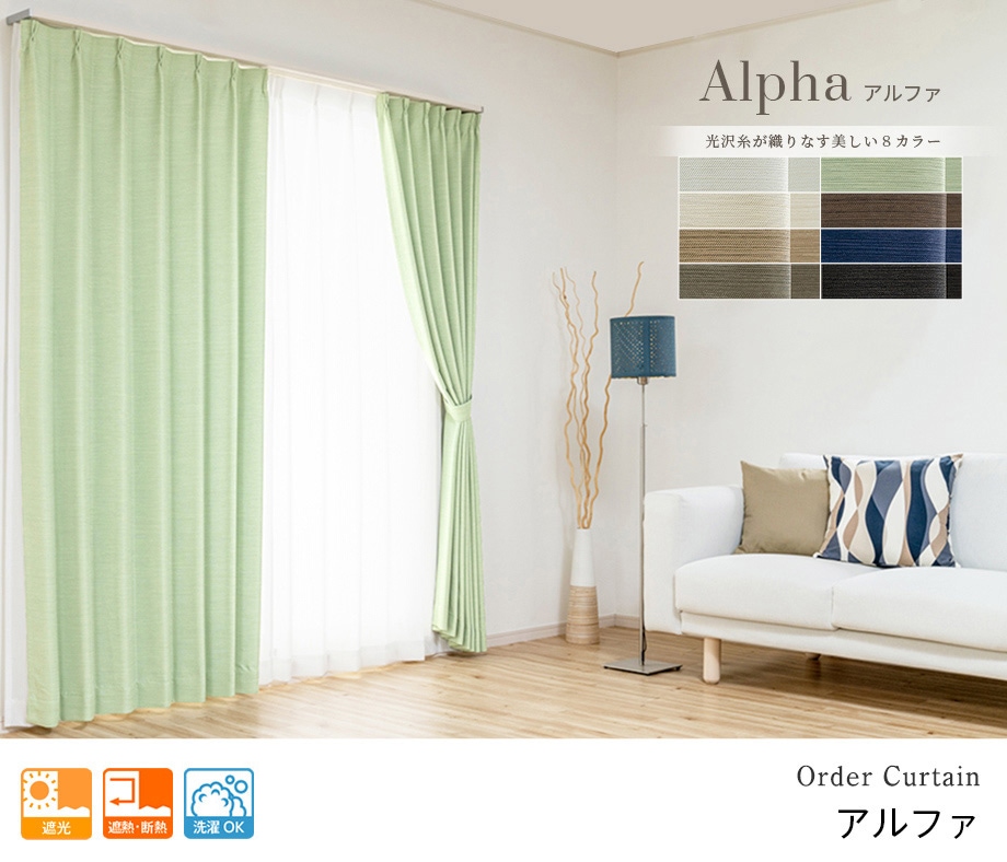 主張しすぎない光沢と繊細な織り感が美しい遮光カーテン「アルファ」非防炎タイプ グリーン(1級遮光)