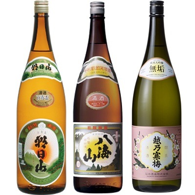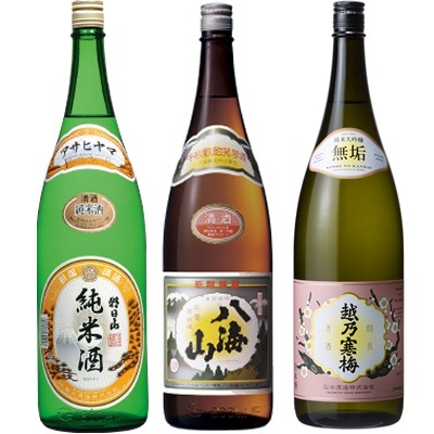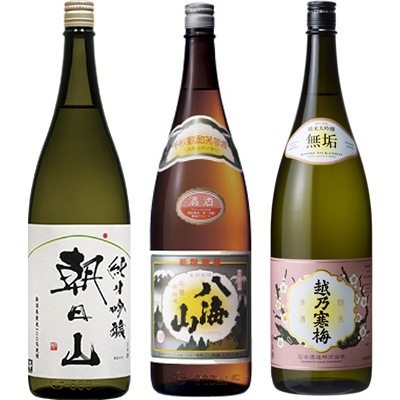 朝日山 純米酒 1.8Lと八海山 普通酒 1.8L と 越乃寒梅 無垢 純米大吟醸 1.8L