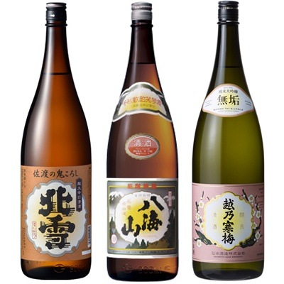北雪 佐渡の鬼ころし 超大辛口 1.8Lと八海山 普通酒 1.8L と 越乃寒梅 無垢 純米大吟醸 1.8L