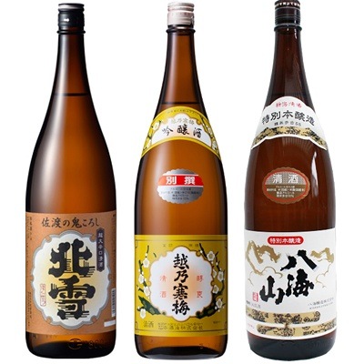 北雪 佐渡の鬼ころし 超大辛口 1.8Lと越乃寒梅 別撰吟醸 1.8L と 八海山 特別本醸造 1.8L
