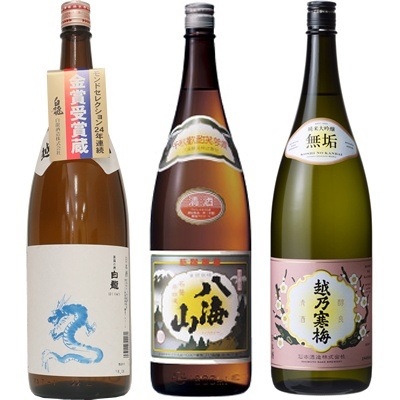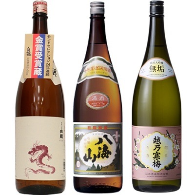 白龍 龍ラベル からくち1.8Lと八海山 普通酒 1.8L と 越乃寒梅 無垢 純米大吟醸 1.8L