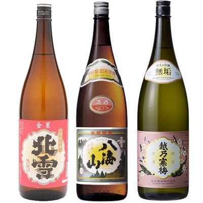 北雪 金星 無糖酒 1.8Lと八海山 普通酒 1.8L と 越乃寒梅 無垢 純米大吟醸 1.8L