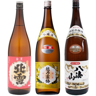 北雪 金星 無糖酒 1.8Lと越乃寒梅 別撰吟醸 1.8L と 八海山 特別本醸造 1.8L