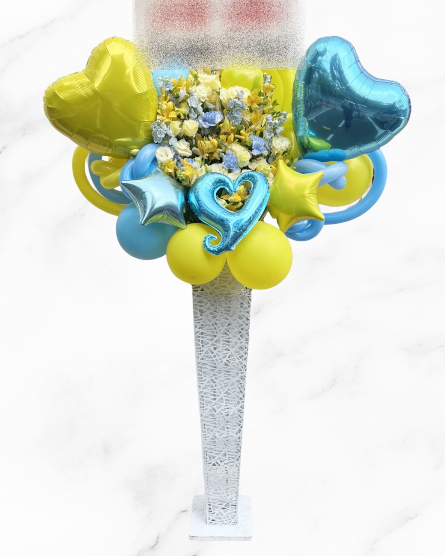 BST1-001 エリア限定商品!東京・神奈川・千葉・埼玉(詳しくはご確認ください) 白ブリキ台 黄色水色系 バルーンスタンド花1...