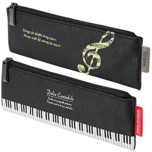 マチ付きペンケース(音楽柄)[Pianoline]【音楽筆箱】