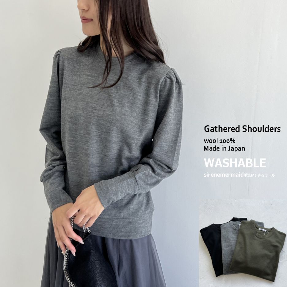 ウォッシャブルウール_ギャザーショルダープルオーバー