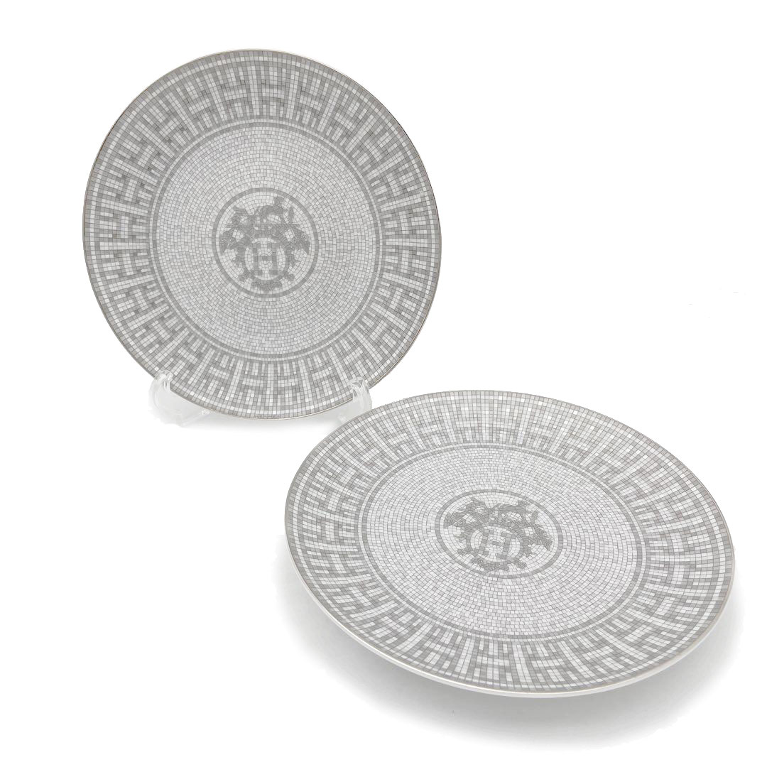 HERMES エルメス モザイク24 ヴァンキャトル 21cm プラチナ デザートプレート ペア 2枚セット 食器 陶器