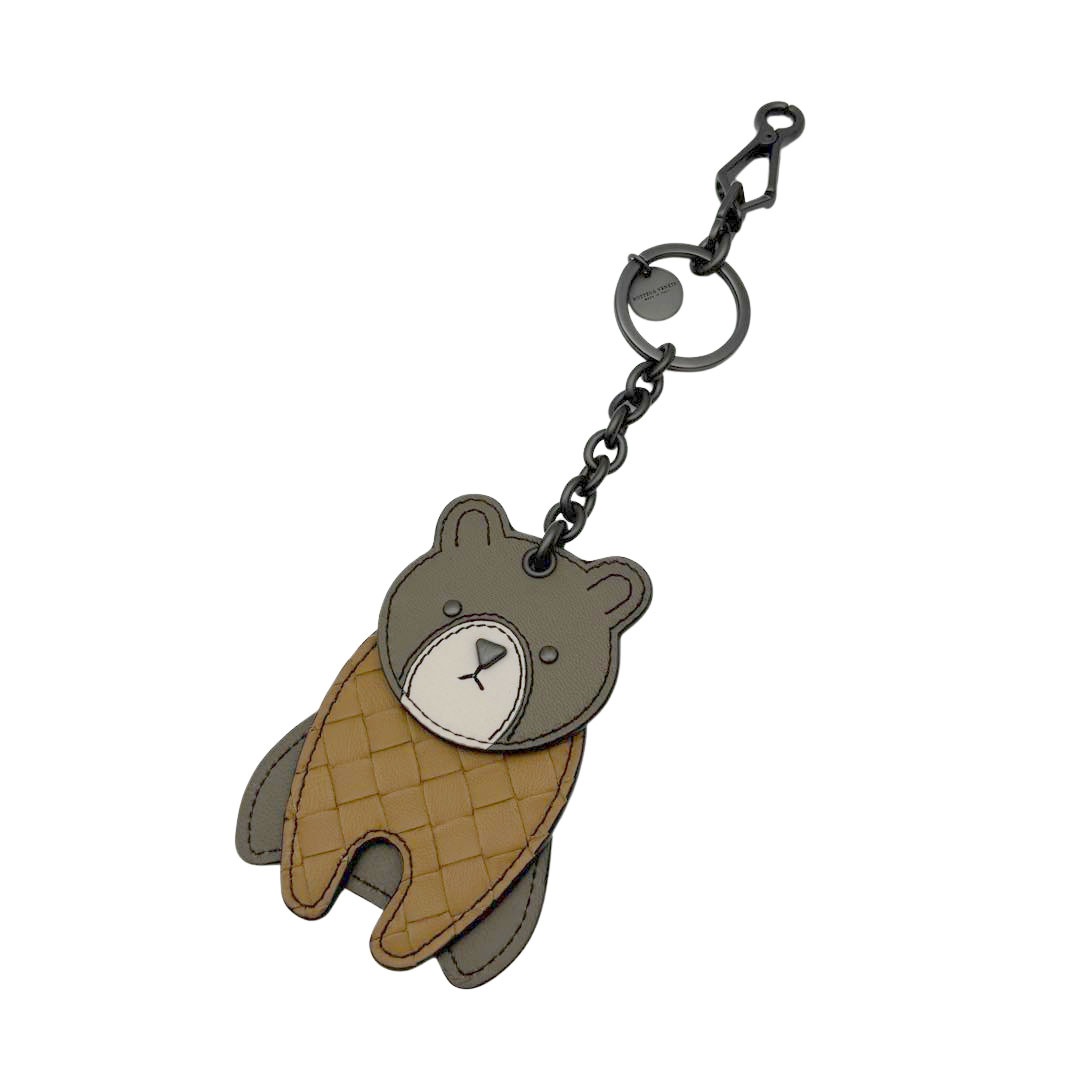 BOTTEGA VENETA ボッテガヴェネタ アニマルキーリング キーホルダー くま ベア イントレチャート ナッパレザー ブラ...