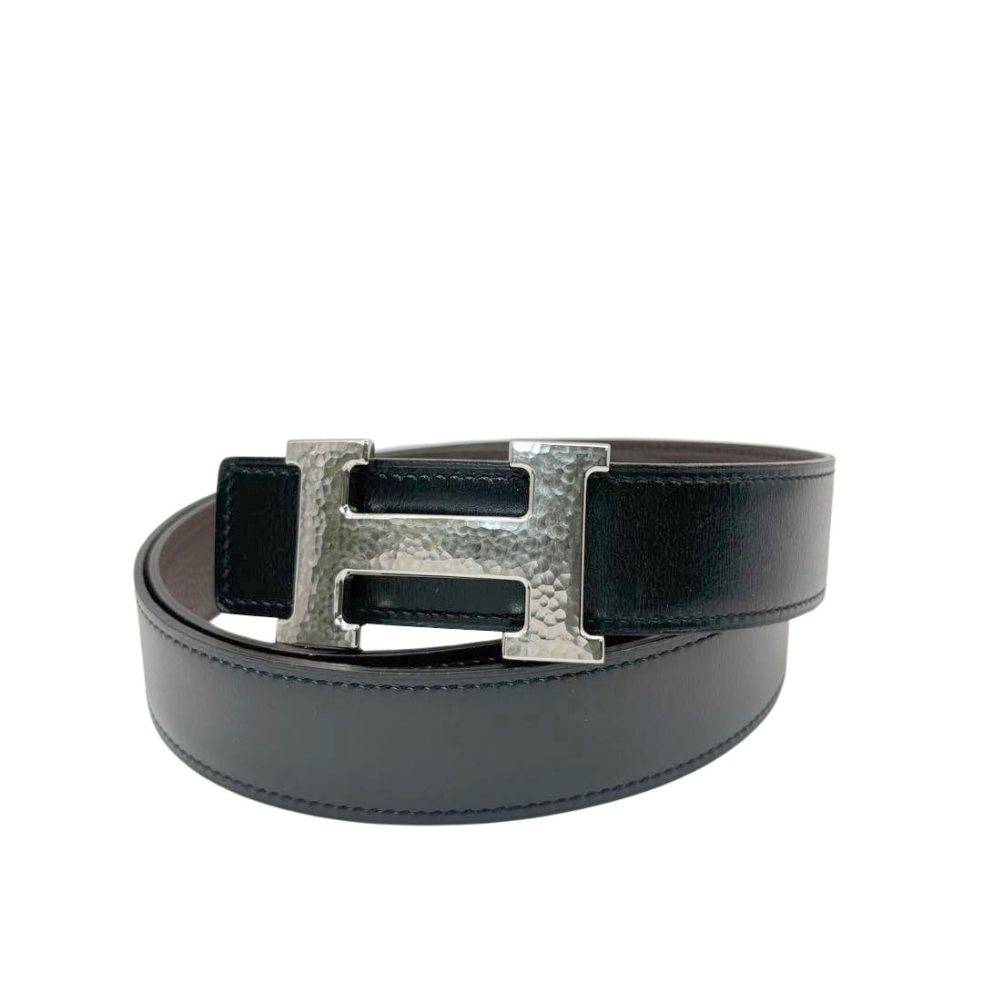 HERMES エルメス Hベルト コンスタンス マルトレ 90 リバーシブル ブラック ショコラ シルバー金具 □P刻印