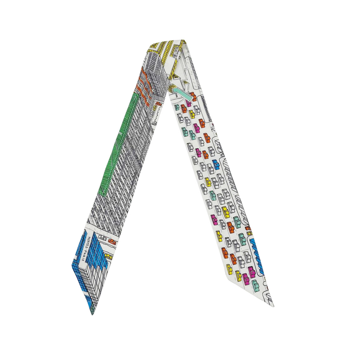 HERMES エルメス スカーフ ツイリー 『PANTIN CITY(パンタンシティ)』 シルク ブラン/ヴェール/マルチカラー ...
