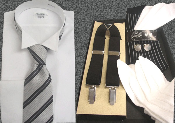 モーニング用品 7点セット(シャツ・ネクタイ・サスペンダー・カフス・手袋・ポケットチーフ・靴下) メンズ S M L LL