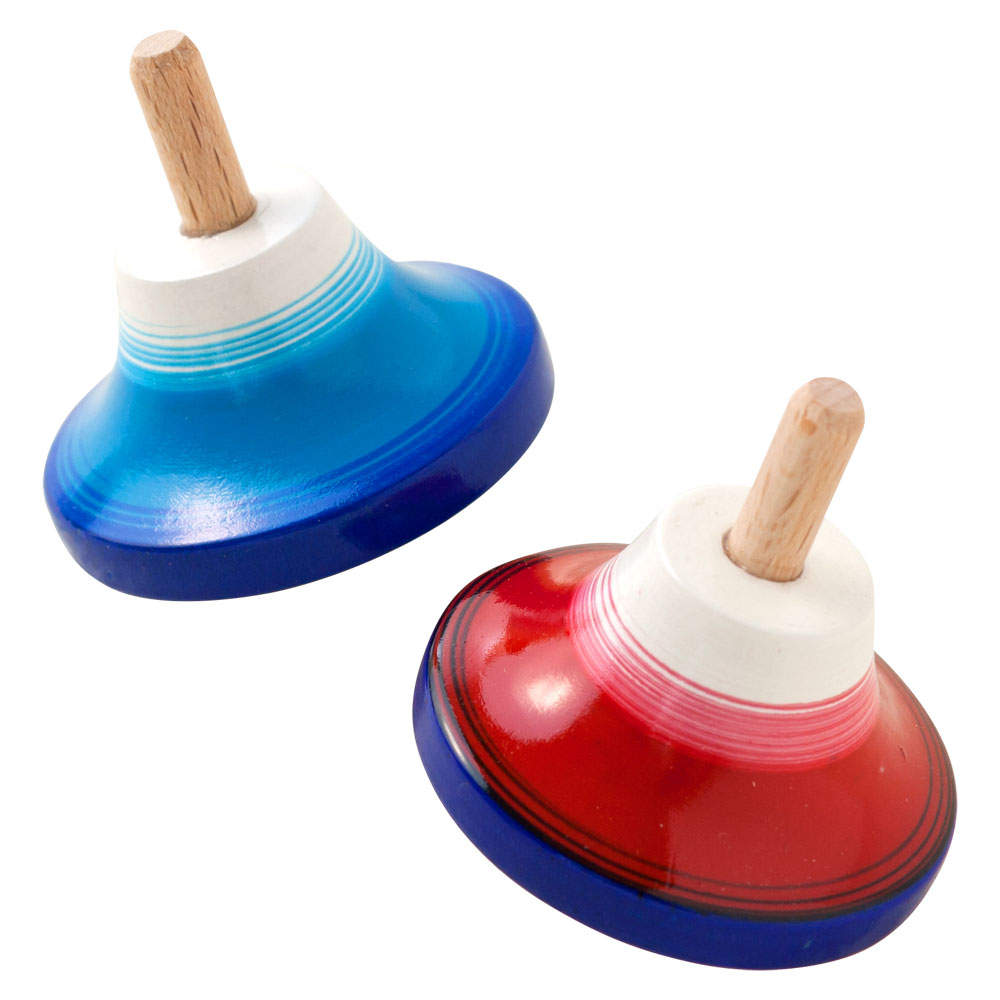 色とりどりのしっかりひねり独楽 木製 平こま 1個 ※色・柄はお選びいただけません