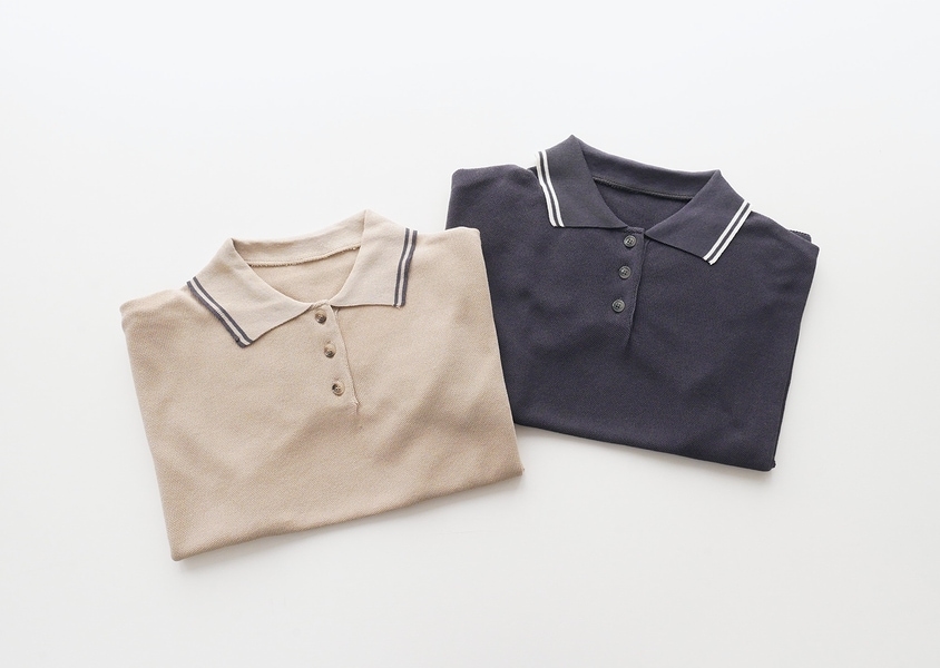 【NARU(ナル)*スノーコットンラインポロ衿ニット(2色)】