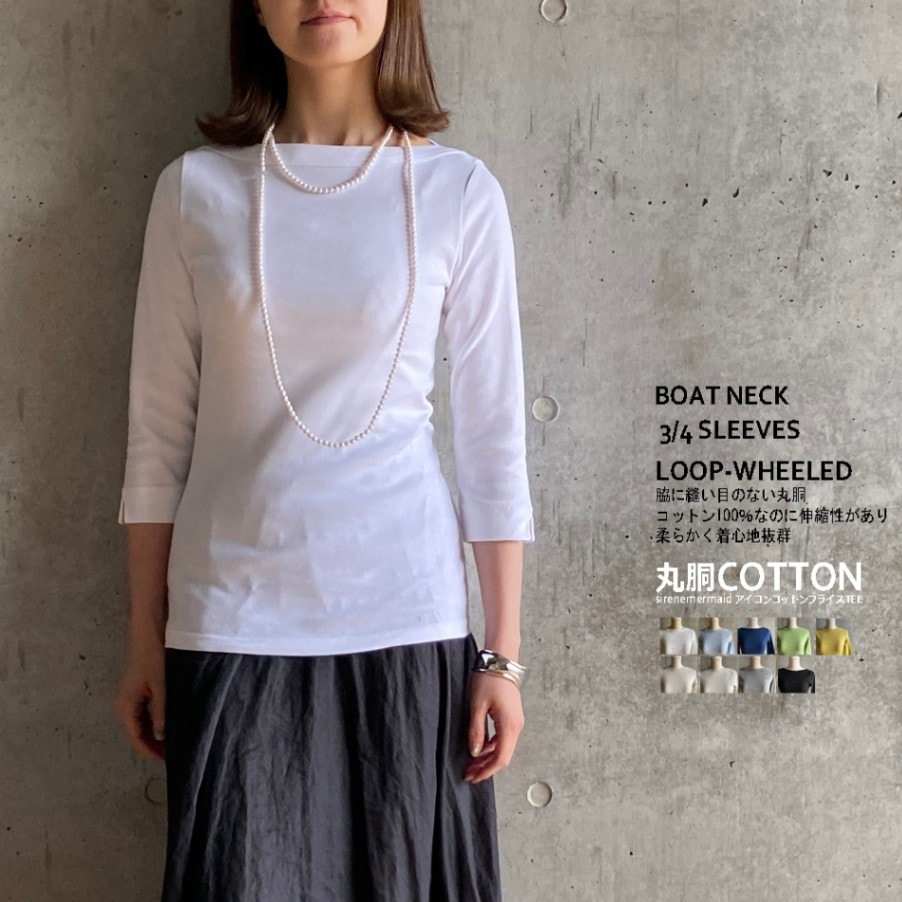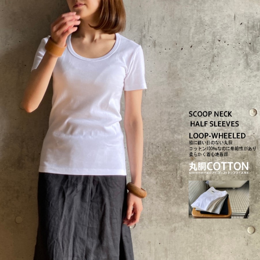 丸胴コットンフライス_ラウンドネックキャップスリーブ