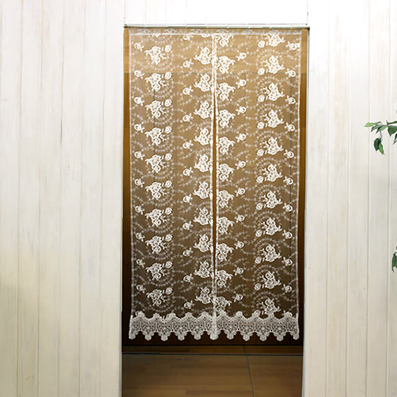 カットワーク刺繍 のれん 約85×150cm [Rose Metopes]