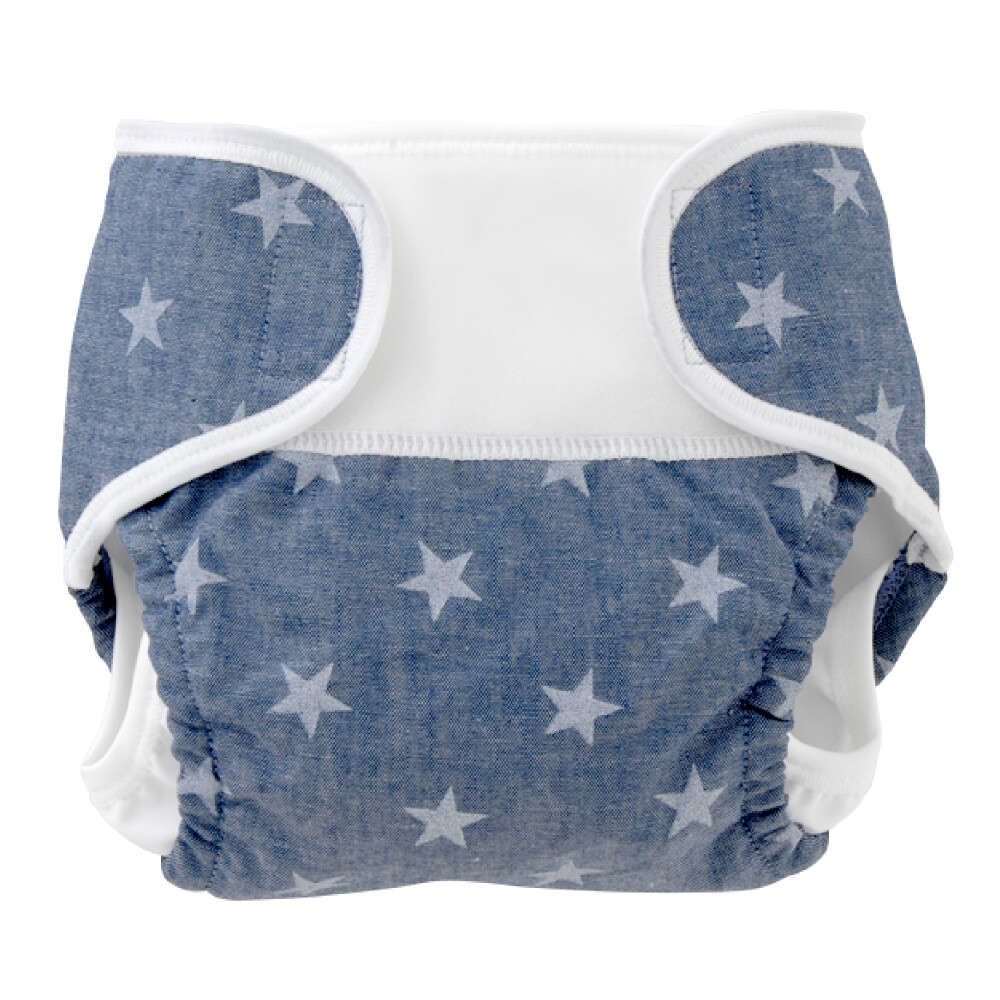 【新生児】 星柄Wガーゼ外ベルトおむつカバー(ワンサイズ55〜80cm)