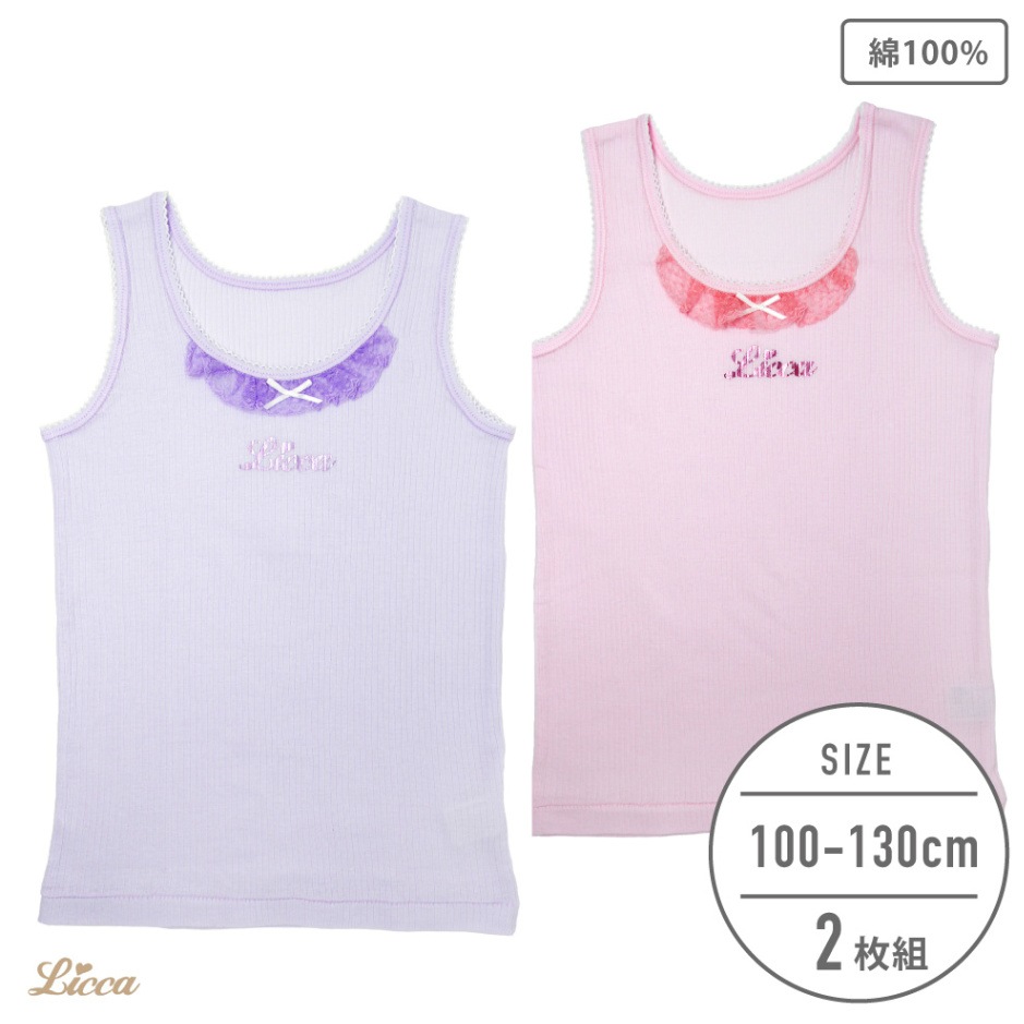 【女の子】タンクトップ 2枚組 無地/レース付き 100~130cm【綿100%】【リカちゃん】