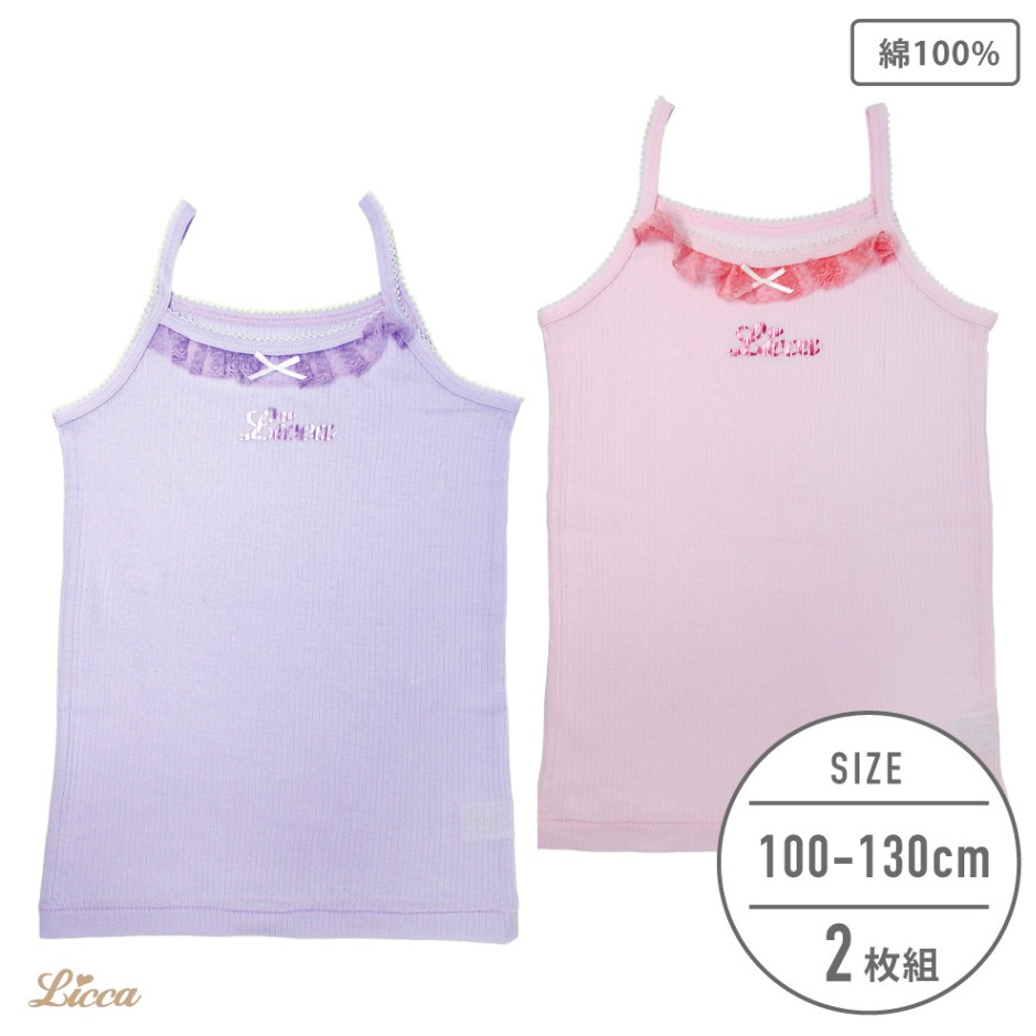 【女の子】キャミソール 2枚組 無地/レース付き 100~130cm【綿100%】【リカちゃん】