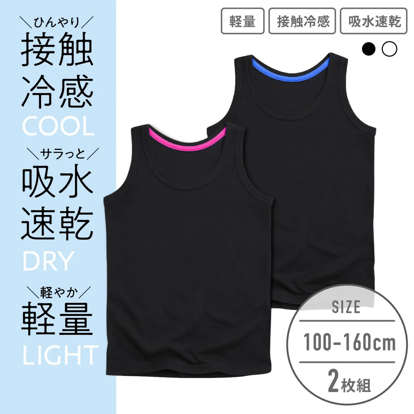 【男の子】キッズジュニア タンクトップ 2枚組 無地 100~160cm【軽量/接触冷感/吸水速乾】