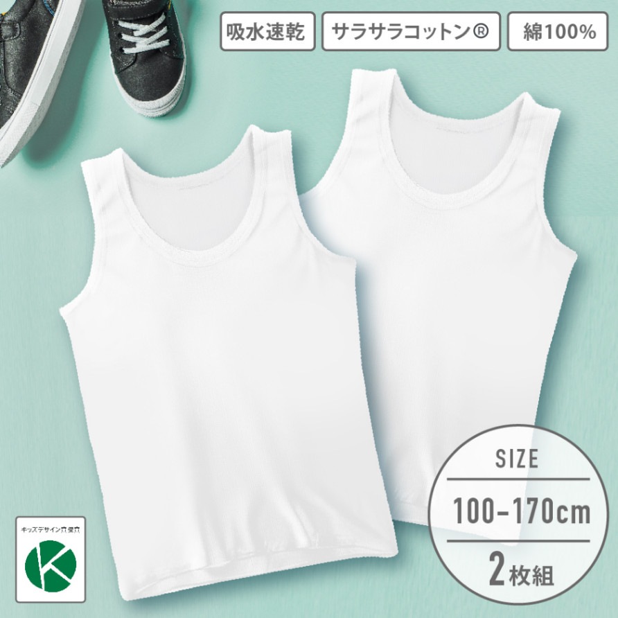 販売数60万セット突破!【男の子】ジュニア ランニング 2枚組 サラサラコットン 100~170cm【綿100%/吸水速乾】