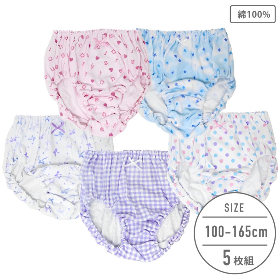 【人気商品】 累計販売数21万セット突破! 【女の子】キッズジュニアショーツ 5枚組 全75柄 100~165cm【綿100%】