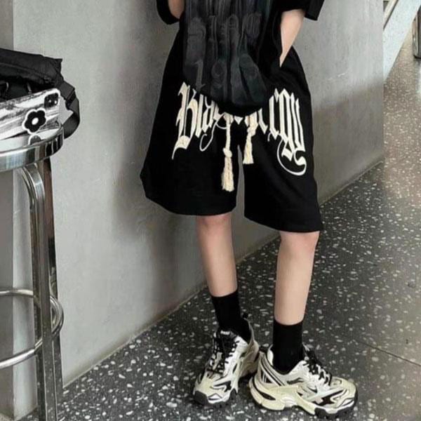 レディース ハーフパンツ ロゴ入り 膝上 ウエストゴム ゆったり 動きやすい パンツ ショートパンツ スポーツ ルームウェア 部屋...
