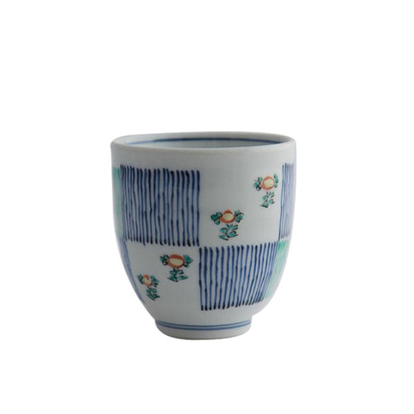 須谷窯 面取湯呑/大(市松文) 九谷焼