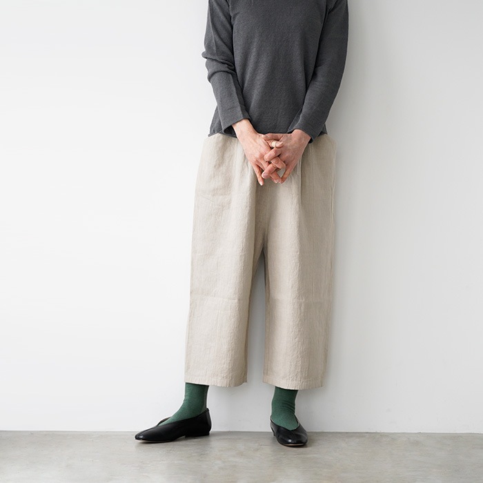 evam eva エヴァムエヴァ water linen crroped pants ウォーターリネン クロップドパンツ E251...