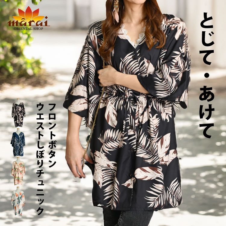 【期間限定50%OFF】チュニック 柄 レディース 前を閉じて開けて2Wayで着こなし。フロントボタンウエストしぼりチュニック ブ...