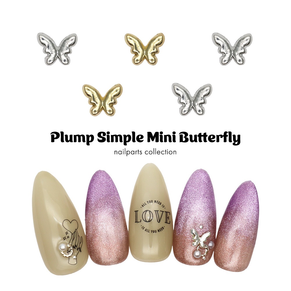 【ネコポス送料無料】ネイルパーツ ぷっくりシンプルミニバタフライパーツ [シルバー 銀/ゴールド 金] 5個入り