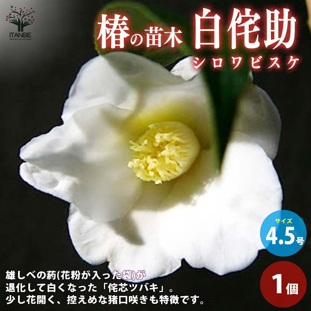 椿(ツバキ)の苗木 品種:白侘助(シロワビスケ)【庭木 4.5号ポット/1個売り】