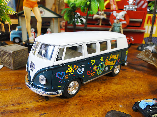 1962年 フラワームーブメント仕様ワーゲンバス ミニカー 1/32スケール (グリーン)