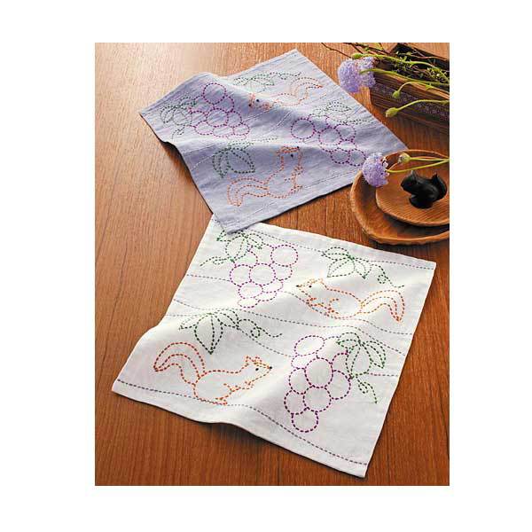 刺しゅう布 『刺し子 花ふきん ぶどうとリス 252』 Olympus オリムパス
