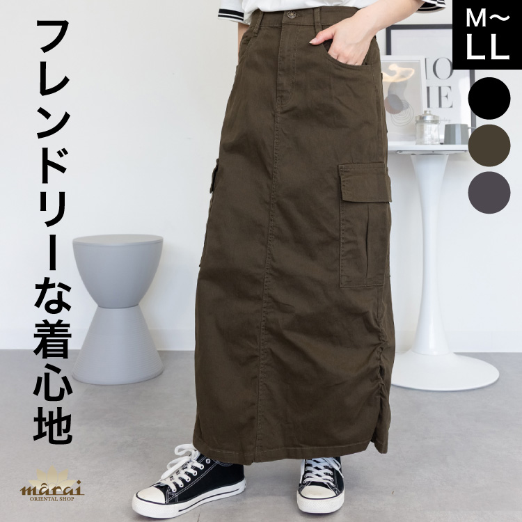 ロングスカート スカート カーゴスカート ストレッチ レディース ロング丈 カーゴ ワークスカート ボトムス Iライン 無地 ギャ...