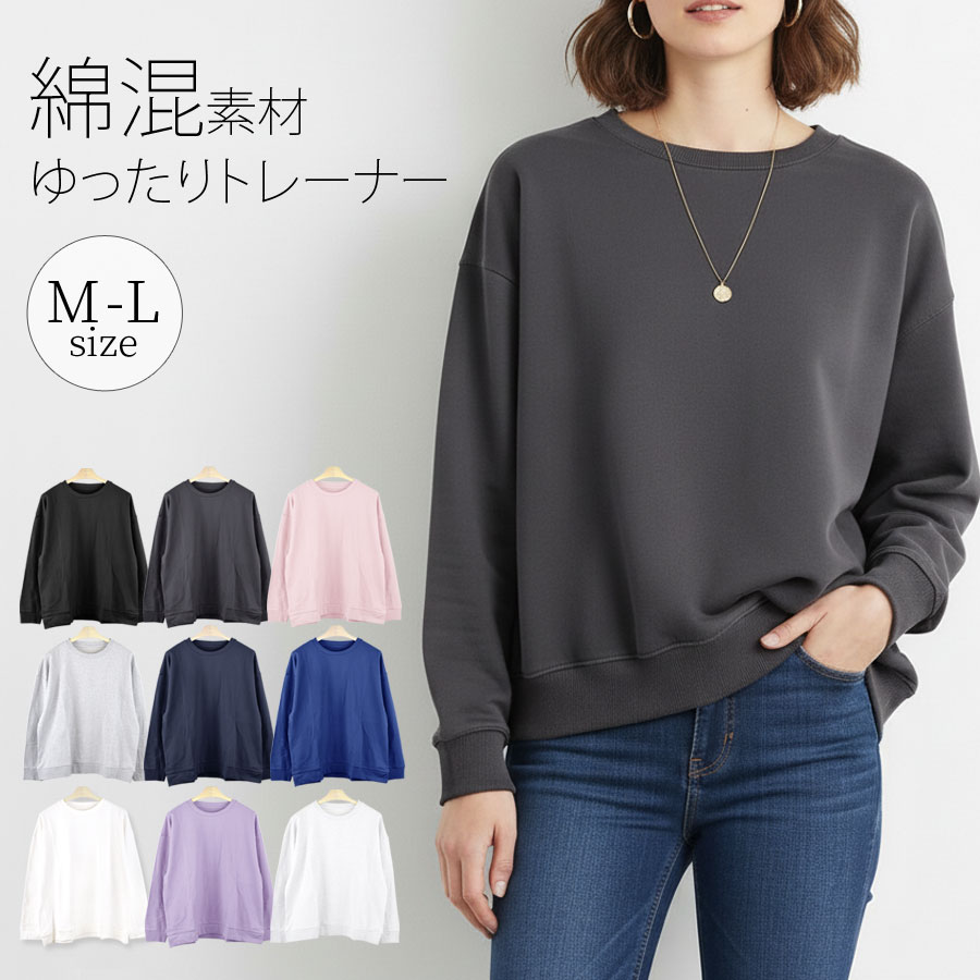 トレーナー レディース スウェット きれいめ 秋冬 裏毛 トップス プルオーバー オーバーサイズ 【送料pt100】