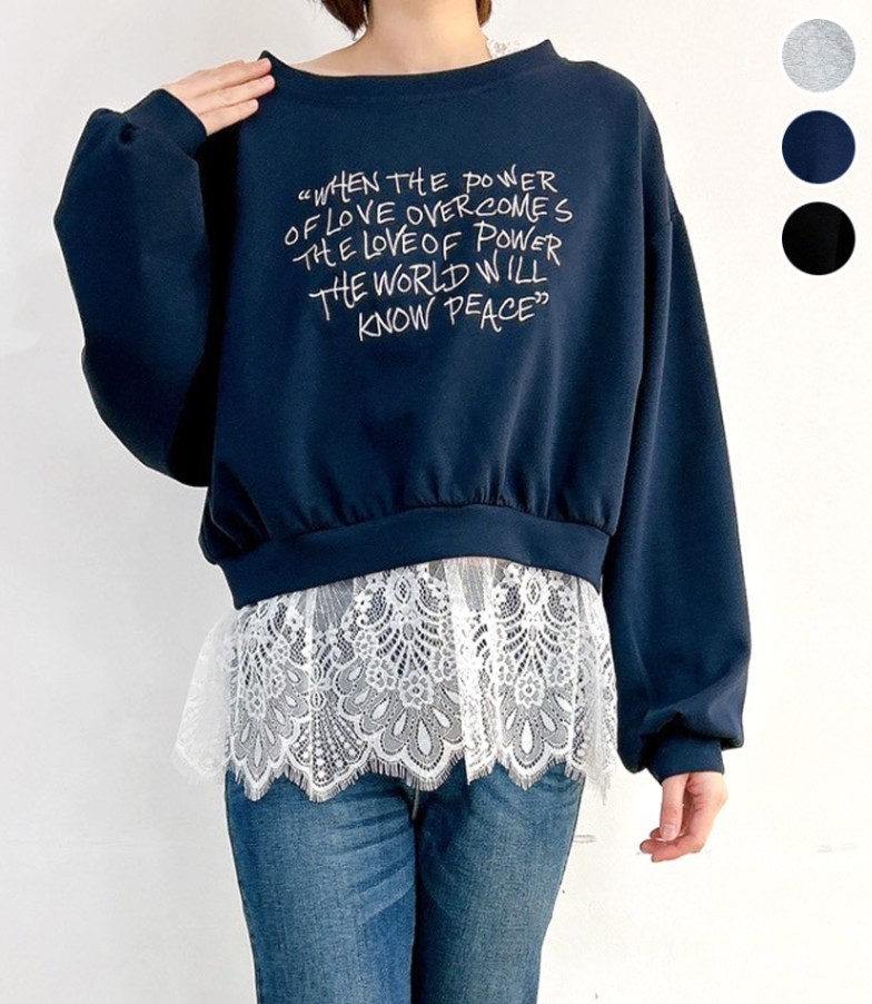 在庫一掃セール 春夏 イタリア インポート カットソー D_ONIS レース切替カットソー ブルー
