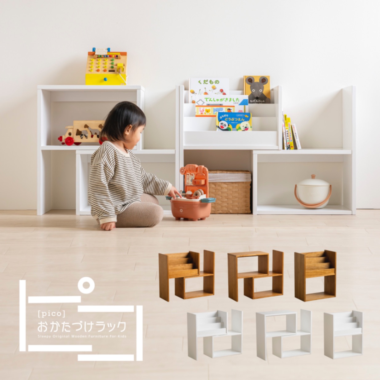 木製「おかたづけラック『ピコ』」 桐材天然木 組立不要 完成品 伸縮 絵本ラック 絵本棚 おもちゃ箱 トイボックス トイラック 本...