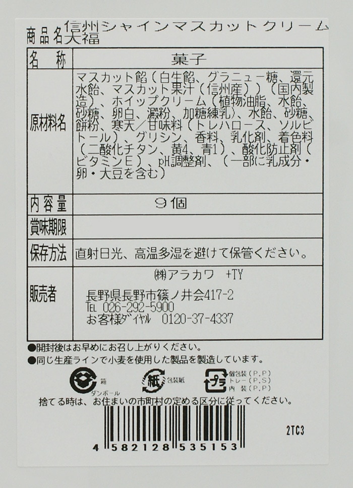 信州シャインマスカットクリーム大福 A(信州長野県のお土産 お菓子)
