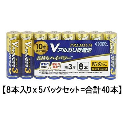 LR6VPS8P【8本入り 5パックセット/合計40本】||【お得なセット販売】 アルカリ乾電池 オーム電機 Vシリーズ プレミア...