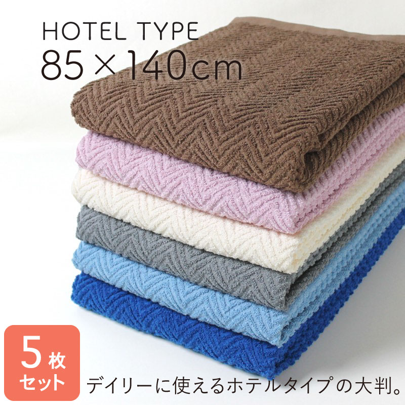 ホテルタイプ 大判バスタオル スウェイカラー 約85×140cm 1300匁・同色5枚セット